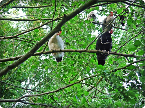 | Und das sind (ich hoffe mich richtig zu erinnern) Seidenhühner. Wobei ich ja ehr finde die sehen aus wie 2- beinige Alpakas. |