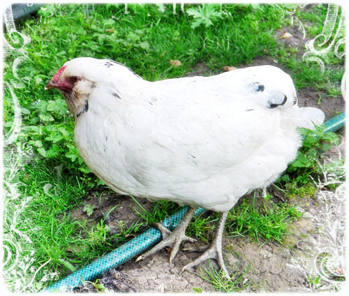 | Heute möchte ich euch mal meine persönlich bekannten Eierlieferanten vorstellen. Zu aller erst "Agathe"! (das wohl weltschönste Huhn!) |