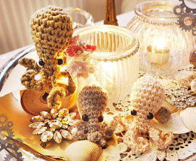| Natürlich alles wieder ohne Anleitung, da ich diese immer so gar nicht lesen kann; ;0) Neeee, da hab ich kein Talent für und ich wüßte auch gar nicht das es hierfür eine gäben tuen täte, oder? Egal, es hat geklappt wie ich mir das vorgestellt habe; denke der ein oder andre davon wird die Steampunk-Bären auf ihren Reisen begleiten. Und wenn die sich noch schön vermehren mach ich mir mal ne Octy-Brosche oder ne Kette.....denn man hat ja meist der Möglichkeiten viele. So dann will ich euch mal nicht länger von eurem alltäglichen Tuen abhalten und wünsch euch nen kuscheligen Abend mit Kerzenschein und Octyknoootschys! ;0) |