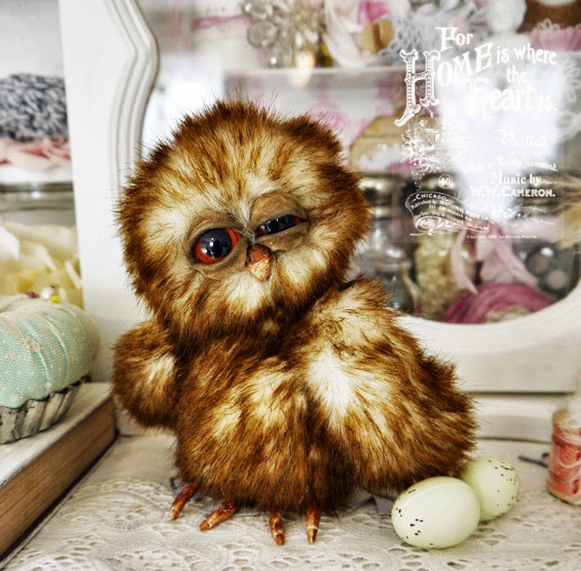 | Neckisch wie er da so vor sich hin zwinkert, oder? Das war ne Heidenarbeit diesem kleinen Zaubärwesen Leben einzuhauchen. Mit viel Tüffteleien, Farben, "Fremdmaterialien" und einigen Knoten später in den Fingern war es abär dann doch gelungen. Wollt ja schon seit längerer Zeit ne Eule nadeln, aber dann haperte es an der Schnittentwerferei, oder es war zu warm, oder zu kalt,oder der Kaffee war leer..... *Örks* da isse wieder, die gute alte Prokrastinatorin! *Hihi* Gut Ding braucht eben seine Zeit und so denk ich ist er mir zur rechten Zeit am rechten Ort "Lebendig" gelungen. (Wir haben mal mit "Augen zu + auf die Hand setzten" bei den Lieblingsmenschen getestet, Ja fühlt sich seeehr echt an!  ;0) |