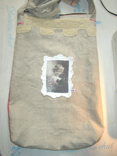 Eine meiner selbstgenähten Taschen aus einem alten Mangeltuch