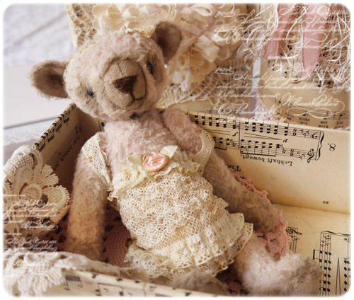 Ein neues Bärenmademoisellchen. Darf ich vorstellen: "Petiiit foour".  Wiedermal im "Antikstyle", im Moment mach ich das wirklich am liebsten, auch wenn´s doch seeehr zeitaufwändig is. Egal, Hauptsache der Effekt dannach is stimmig.